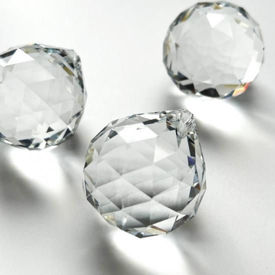 上部に穴が開いているため、ワイヤーやリングを通して簡単に吊り下げることができるクリスタルボールです。手作りのサンキャッチャーをはじめ、ビーズ作品、ストラップ、アクセサリーなどのパーツとして幅広く活用できます。